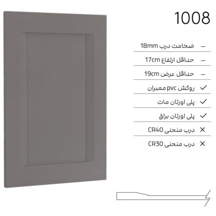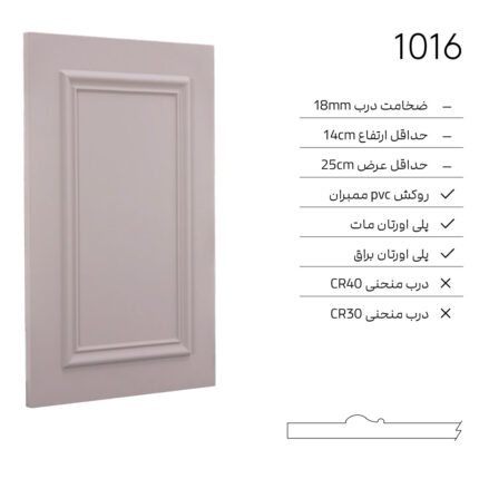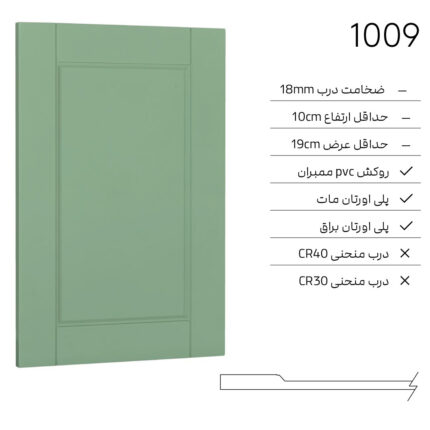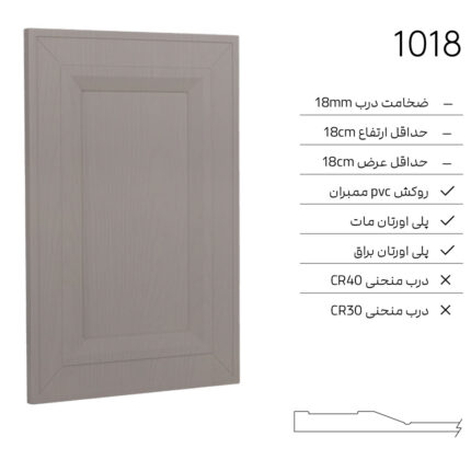 ✓ ضخامت درب 18mm ✓ حداقل ارتفاع 14cm ✓ حداقل عرض 25cm ✓ روكش PVC ممبران ✓ پلى اورتان مات