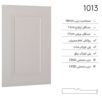 ✓ ضخامت درب 18mm ✓ حداقل ارتفاع 10cm ✓ حداقل عرض 17cm ✓ روكش PVC ممبران ✓ پلى اورتان مات