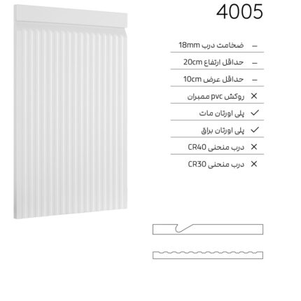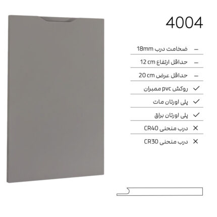 ✓ ضخامت درب 18mm ✓ حداقل ارتفاع 10cm ✓ حداقل عرض 10cm ✓ روكش PVC ممبران × پلى اورتان مات